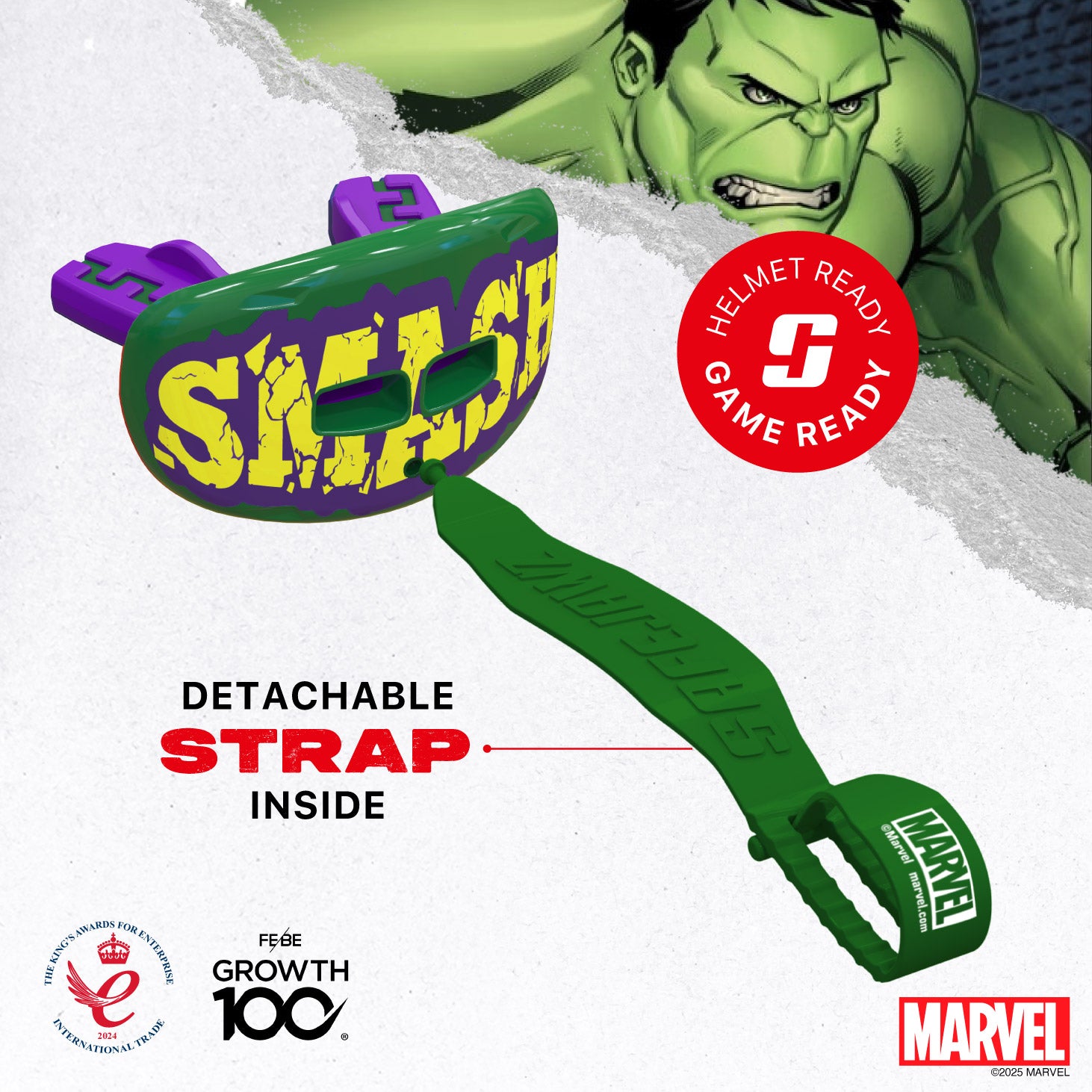 Often, Lip Guards can make it difficult to talk, breathe and drink.  But with the Marvel Hulk Lip Protector Mouthpiece, these worries are a thing of the past, leaving you to focus on your game with confidence and style.